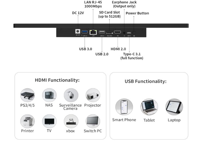 HDMI, USB, USB 2.0, USB 3.0 |